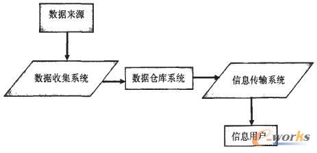 如图1所示。CRM由数据收集、数据仓库和信息传输三部分组成。数据收集系统将来自内部与外部的数据送到数据仓库,经分析后从数据中获得信息。数据是难以直接应用的,而信息则揭示了一些以前并不了解的事情。