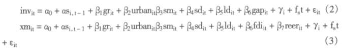 考虑到方程的联立性问题,如经济增长会影响储蓄和投资,但反过来储蓄和投资亦可能对增长生成反馈效应,其结果是解释变量外生性的经典假设不再成立,一般的最小二乘法、固定效应模型和随机效应模型得到的回归系数不再是无偏和一致的,所以这里引入了被解释变量的滞后项,即采用动态面板数据模型。然而,这又可能会带来自变量的滞后因变量与各截面上的个体效应和误差项相关(Mileva,2007),为此必须引入合适的工具变量,以解决普通面板回归难以化解的自相关和内生性问题,通过将弱外生变量的滞后项作为工具变量纳入到估计方程中,获得一致性估计。Arellano和Bond (1991)提出动态GMM法来进行估计,他认为,如果时间序列较短,且滞后的被解释变量和解释变量是长期一致性趋势,那么这些滞后的工具变量只是弱工具变量,但是在对原方程进行差分后,再用一组滞后的解释变量作为差分方程中相应变量的解释变量,就可以有效地克服自相关性、遗漏变量和反向因果关系对估计结果的干扰。本文利用statal0进行具体估计。