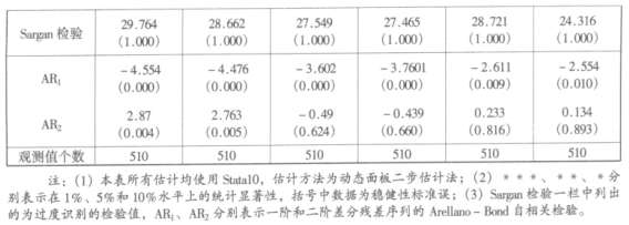 下表报告了使用工具变量法进行的二阶段GMM估计结果: