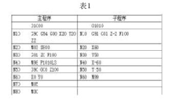 1.主程序中的模态G代码可被子程序中同一组的其它G代码更改,如主程序中的绝对坐标指令G90会被子程序中的相对坐标指令G91更改,从子程序返回时也变为G91状态。要给学生强调子程序的编程一般是相对坐标编程,在编程时必须特别注意这一点,避免混乱。